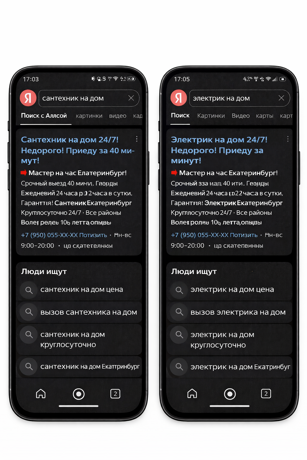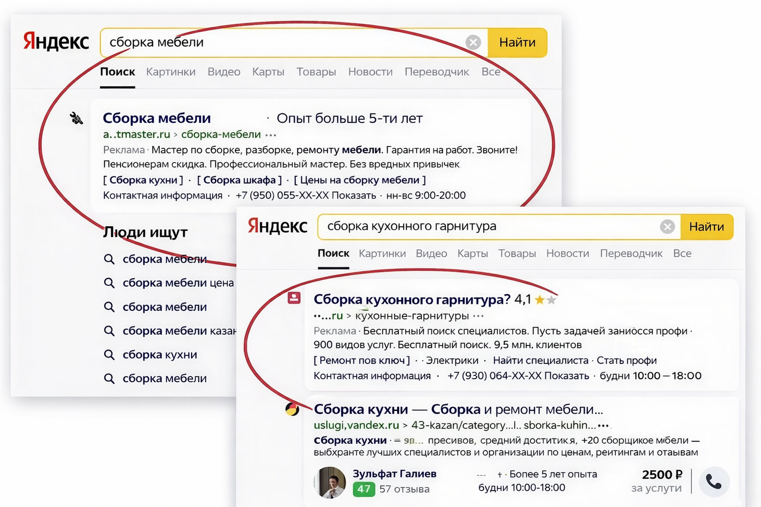 За счет рекламы сайт будет находиться на верхних позициях поиска Яндекса и выше предложений частных мастеров на Яндекс Услугах, что даст Вам безусловно преимущество