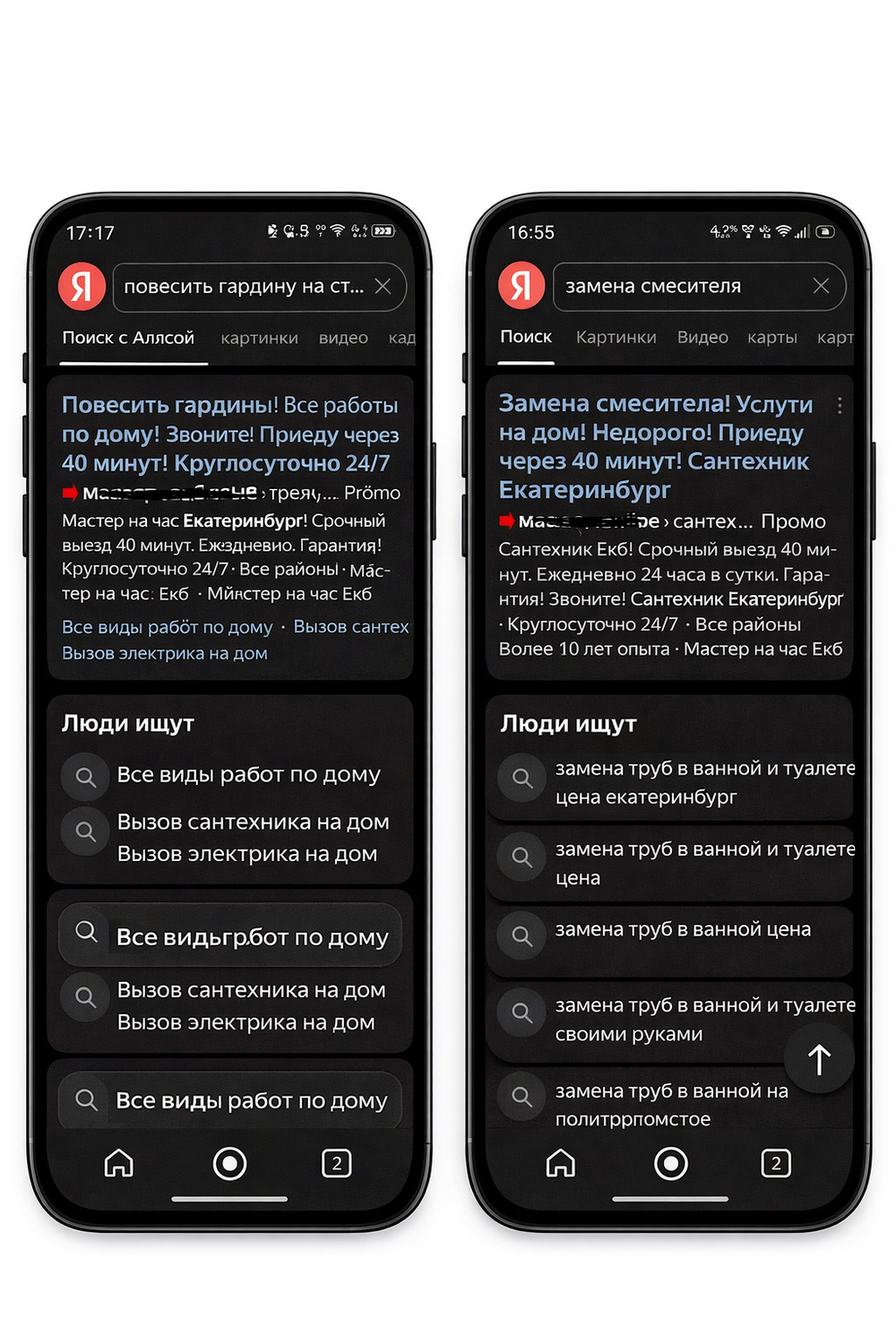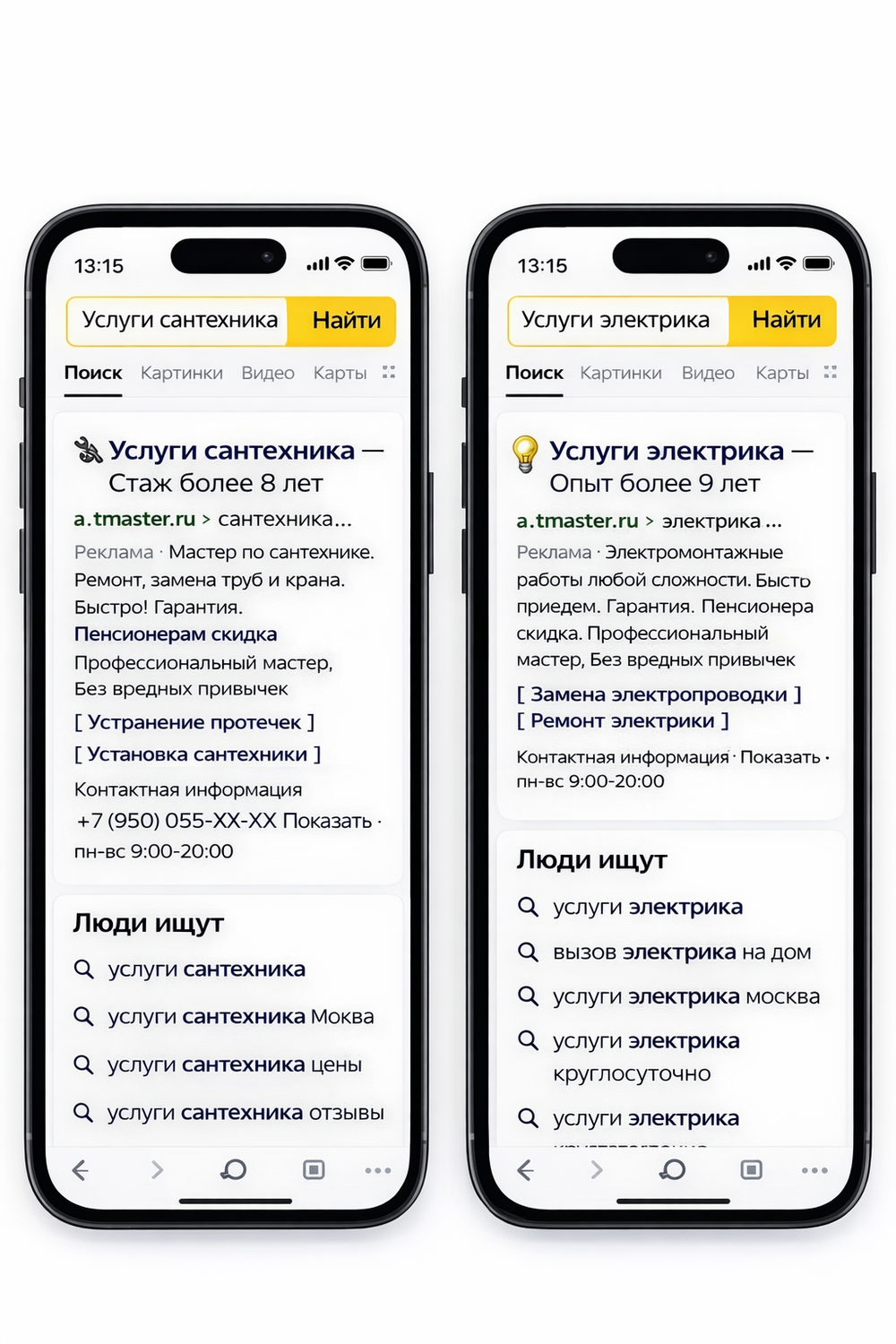 За счет рекламы сайт будет находиться на верхних позициях поиска Яндекса и выше предложений частных мастеров на Яндекс Услугах, что даст Вам безусловно преимущество